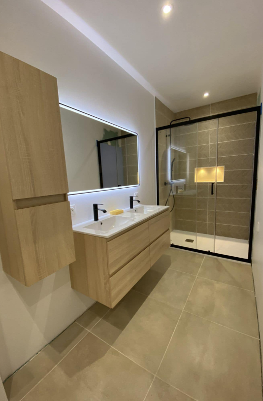 - Création complète de salle de bain clé en main, y compris aménagement PMR