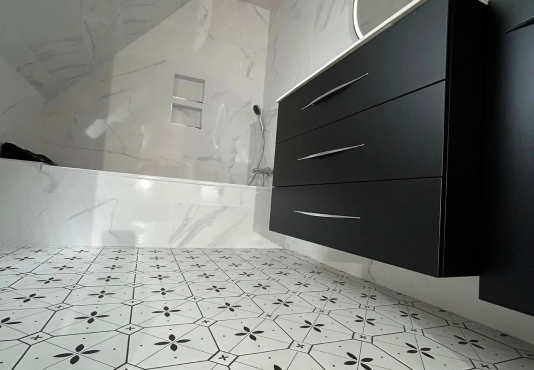 Nous assurons la pose complète des équipements sanitaires : douche, baignoire, vasque, WC, meubles de rangement… Chaque choix est guidé par vos besoins, vos préférences esthétiques et votre budget. Nous réalisons également la pose de carrelage au mur comme au sol, en sélectionnant des matériaux résistants à l’humidité et faciles à entretenir.